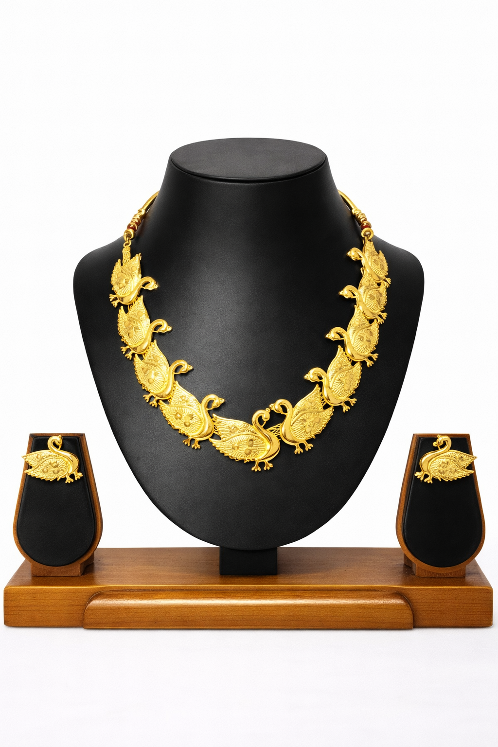 Traditional Duck Motif Design Gold Plated Necklace Set with Earrings